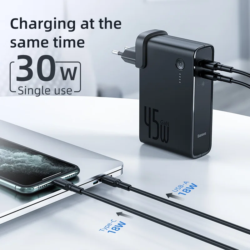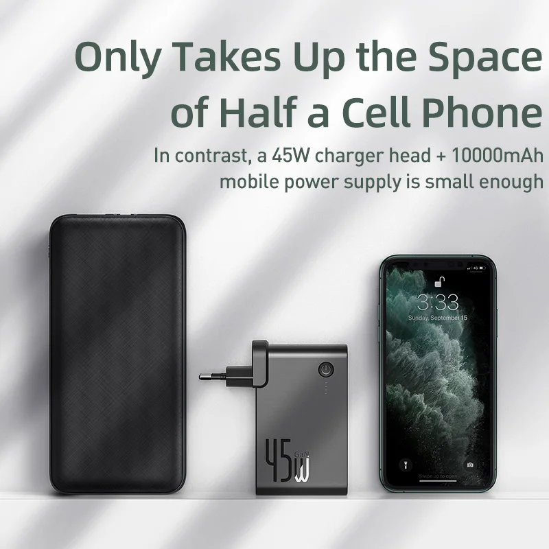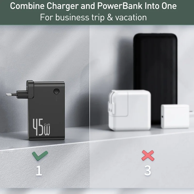 Baseus GaN Power Bank Charger 10000mAh 45W USB C PD Fast Charging 2 in 1 Charger & Battery as One ForiP 11 Pro Laptop ForXiaomi