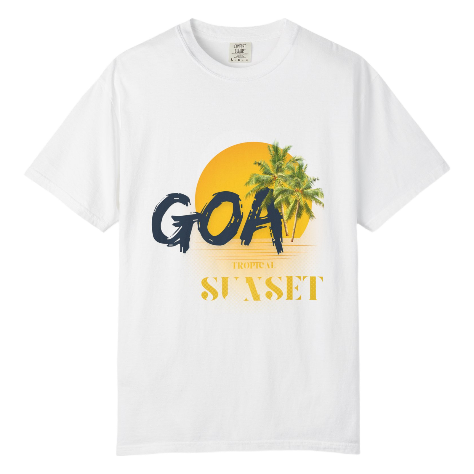 The Goa Sunset T-shirt is your perfect companion for a laid-back day by the beach or a casual outing. Inspired by the vibrant and picturesque sunsets of Goa, this t-shirt effortlessly captures the beauty of glowing horizons and tranquil waves. Designed for comfort and style, it is more than just a piece of clothing—it’s a wearable slice of paradise.