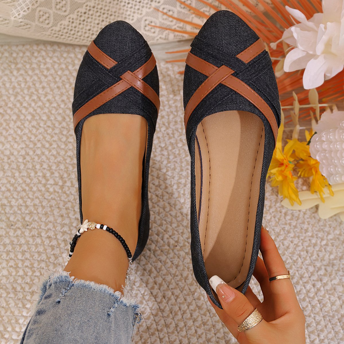 Ins Cross-straped Denim Loafers Fashion Lightweight Comfortable Flats Shoes For Women