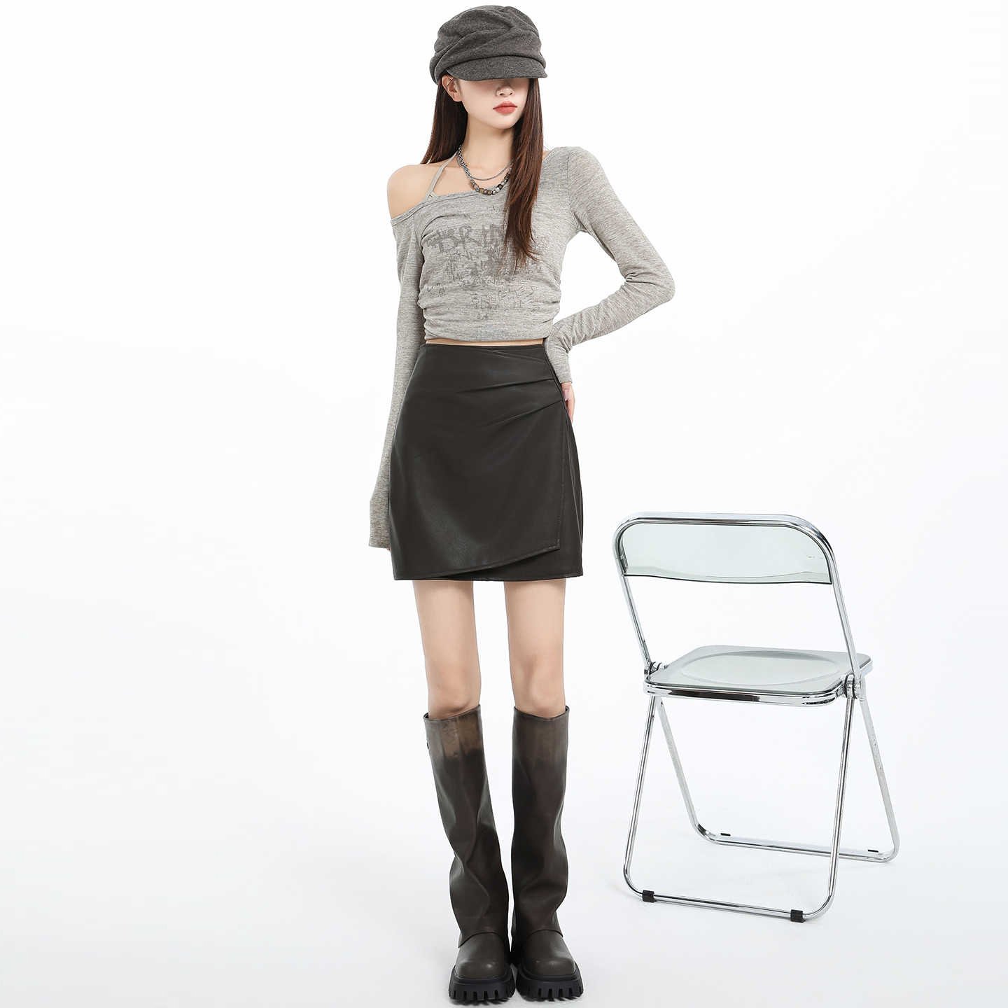 Be the first to review “Irregular Pleated PU Leather Skirt Women High Waist Slim Fit Bodycon A-Line Mini Skirt”