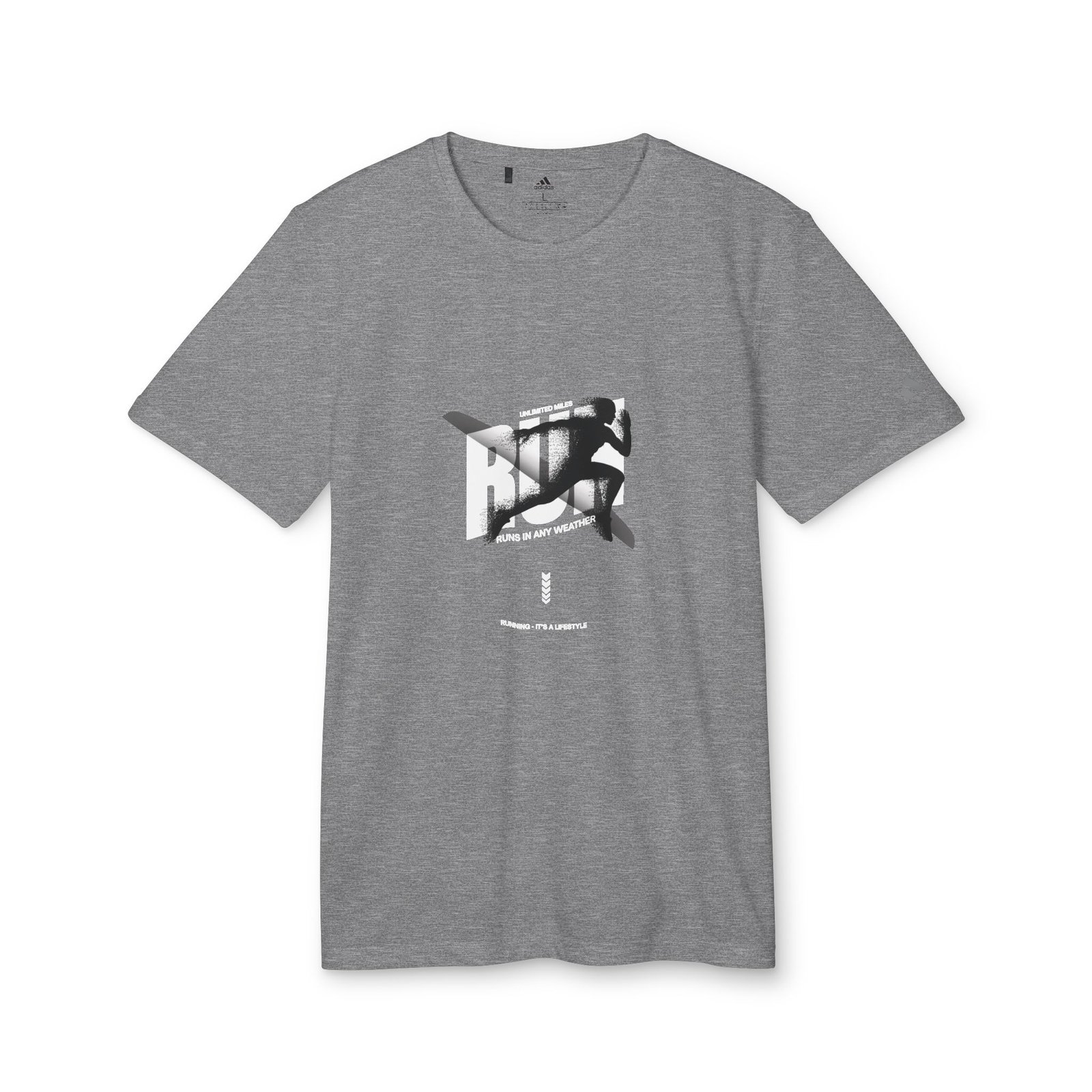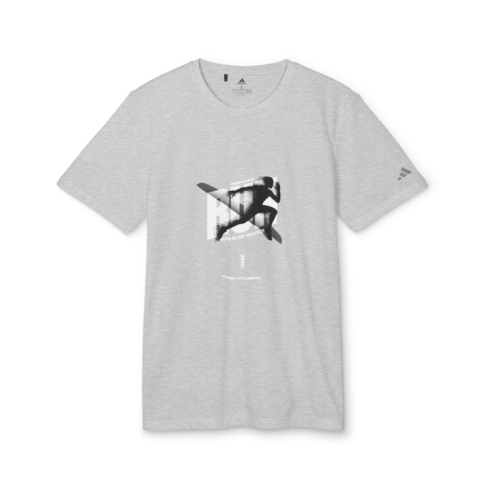 Lightweight, breathable performance with street-ready style. This athletic tee blends recycled-performance fabric with a bold graphic that reads like a runner’s mantra — crisp black-and-white block art with flashes of purple and the line “Every step has power.” It moves with you: quick-drying, moisture-managing polyester keeps sweat at bay while UPF 50+ helps shield skin during sunny runs. The relaxed open-hem sleeves and regular fit give it casual ease for warm-up laps, city miles, or layering after a workout. Subtle adidas branding on the sleeve keeps the look authentic without shouting, while DTF printing preserves sharp contrast and detail through repeated wear.