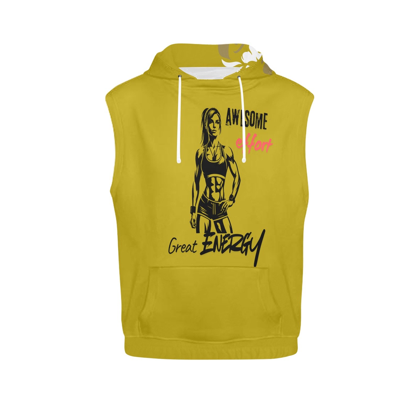 【Product Description】12.70 Oz. Polyester 94%, Spandex 6%.Dye-sublimation printing, Personalized all-over print sleeveless hoodie for women.Each panel is cut and sewn together to ensure a flawless graphic.Features drawstring hood, sleeveless, front kangaroo pocket and elastic waistband.