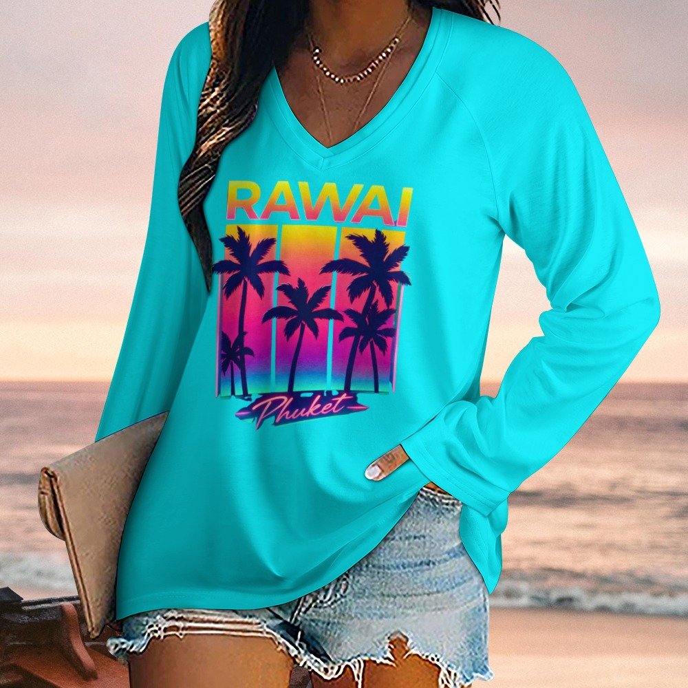 Crafted from high-quality, breathable fabric, the Women’s Long Sleeve Loose Tee ensures optimal comfort all day long. The lightweight material lets your skin breathe while providing a soft touch against the skin, perfect for the warm breezes of Rawai Phuket or any tropical location. Plus, the loose fit enhances mobility, keeping you effortlessly comfortable in any weather or occasion.