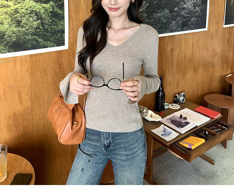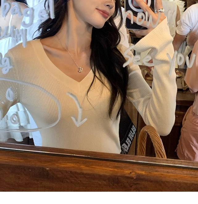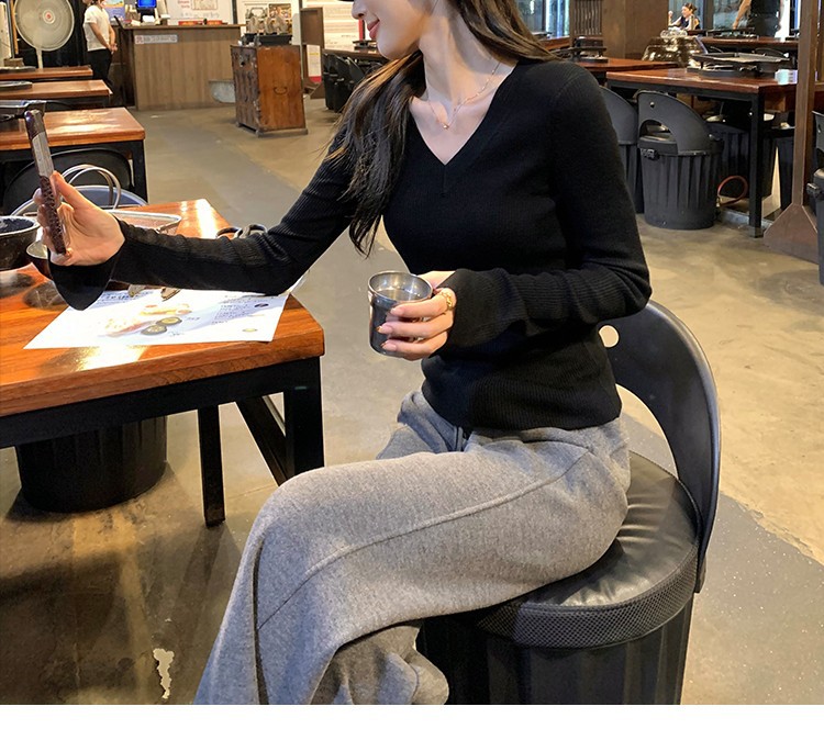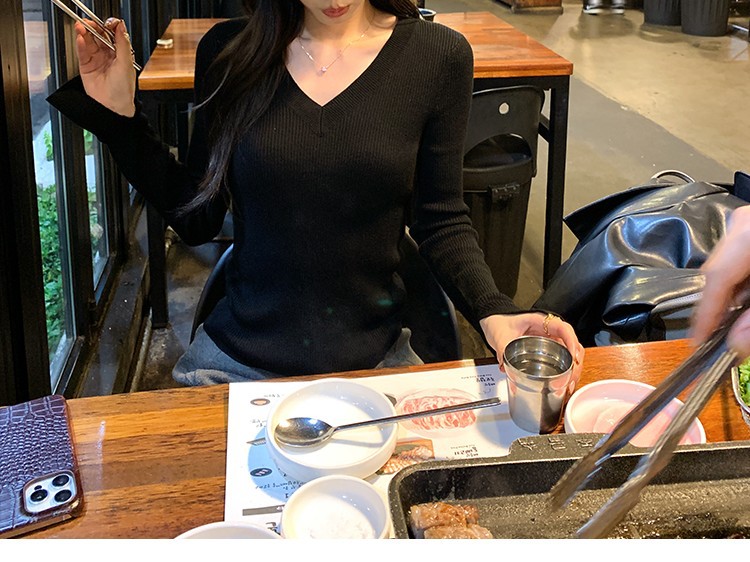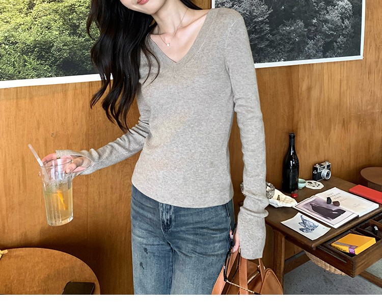 Be the first to review “Elegant Basic V-Neck Knitwear Women’s Slim Fit Inner Layer Long Sleeve Top”