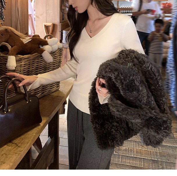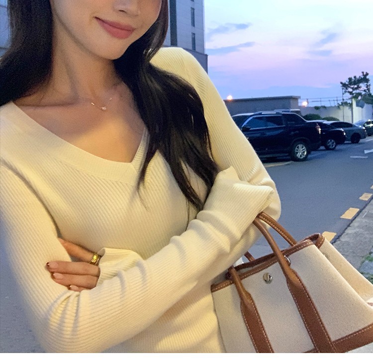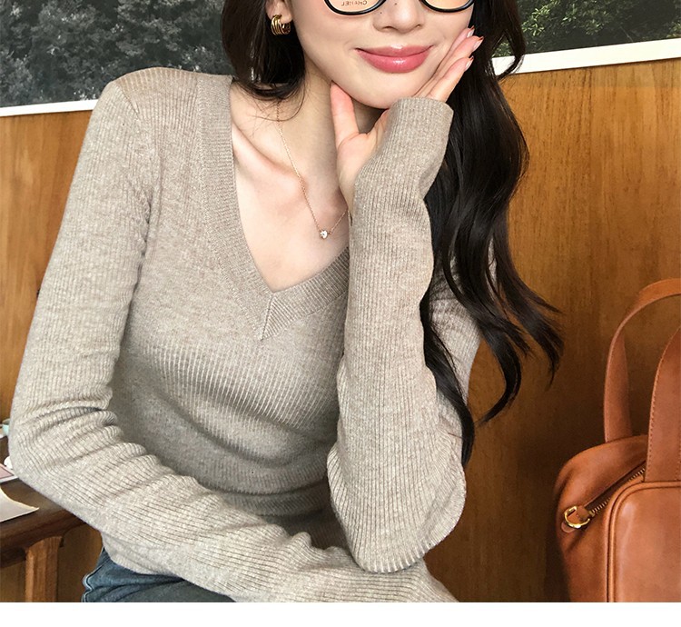 Elegant Basic V-Neck Knitwear Women’s Slim Fit Inner Layer Long Sleeve Top